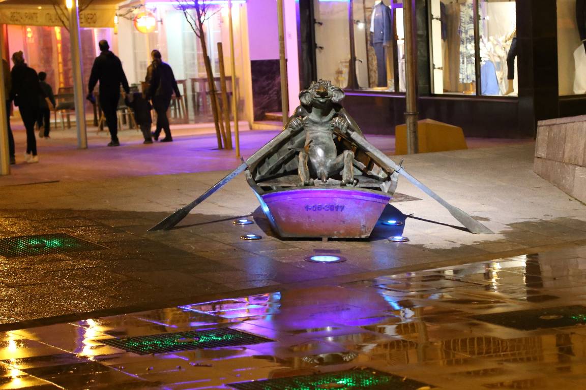 Dieser Fameliar rudert auf dem Plaça d'Isidor Macabich.
